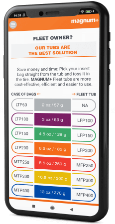 One of the core company products, the fleet tub, offers customers TPMS-compatible toss-in insert bags, ideal for fleets. The tub features non-disintegrable, perfectly round beads that do not require any special valve core while balancing.