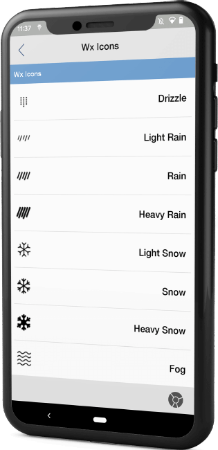 Every type of weather condition has a designated icon to improve user readability and overall application aesthetics. The list assists users in becoming acquainted with these icons in order to have a more enjoyable experience.