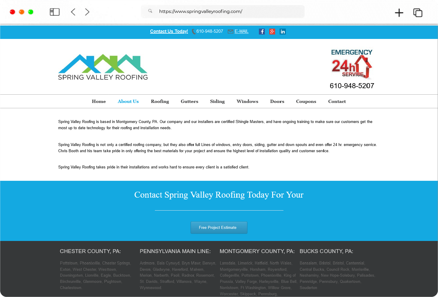 Spring Valley Roofing is a certified roofing company based in Montgomery County, PA. The company wanted to increase its business presence and partnered with Conovo to develop its official website. We decided to use WordPress because it helps in creating an intuitive interface, provides easier management, and has high search engine compatibility. The website provides easy content management and an SEO-ready structure.